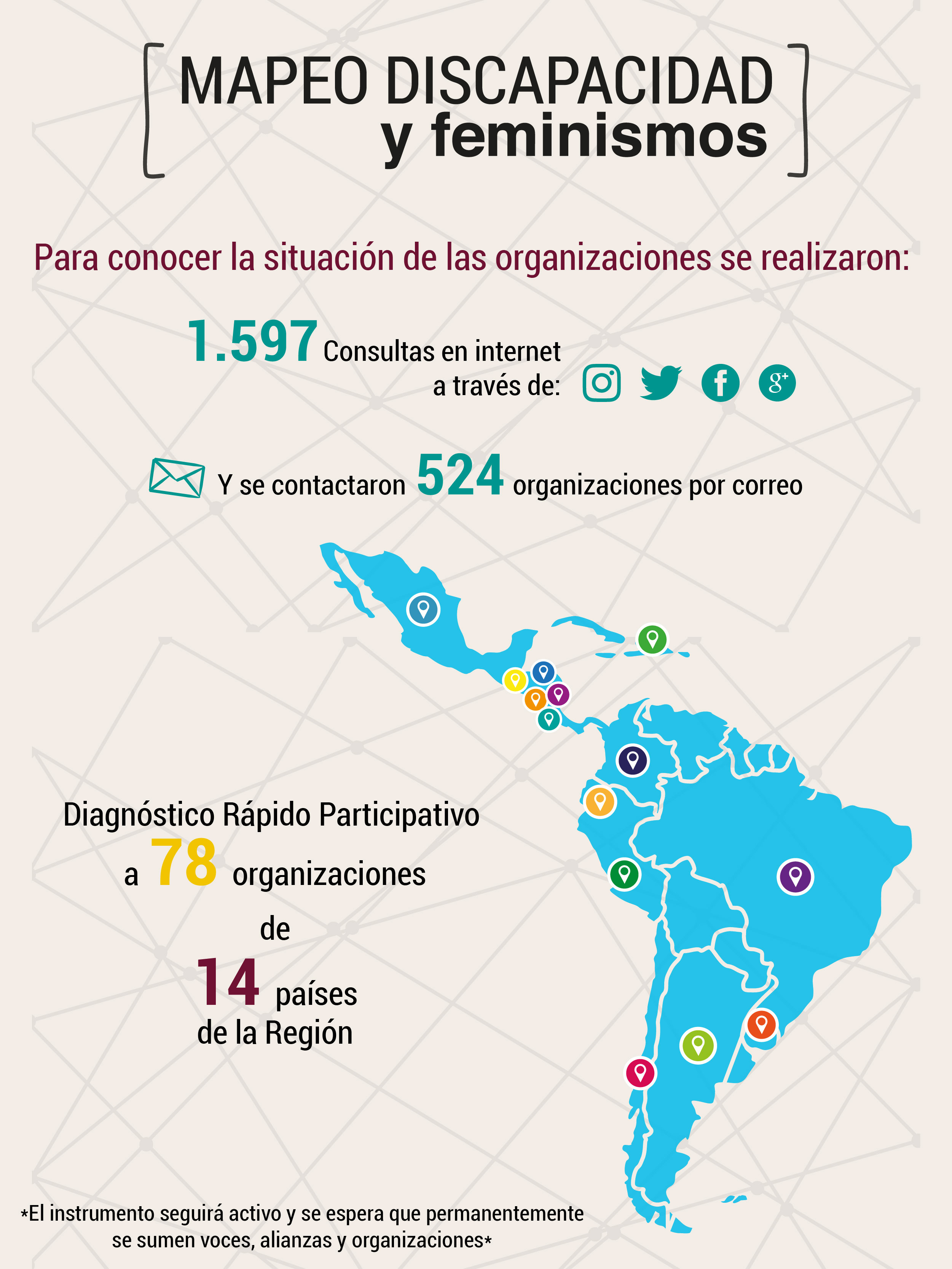 Fruto del ejercicio de reflexión y análisis realizado en conjunto con las organizaciones y mujeres que participaron de este proceso, ahora contamos con el “Mapeo Discapacidad y Feminismos: visibilizar los ejercicios de acción colectiva” que nos permite conocer un poco de la realidad, las resistencias y los esfuerzos que realizan las mujeres con discapacidad, así como los principales avances, logros y retrocesos en materia de derechos de las personas con discapacidad en América Latina.