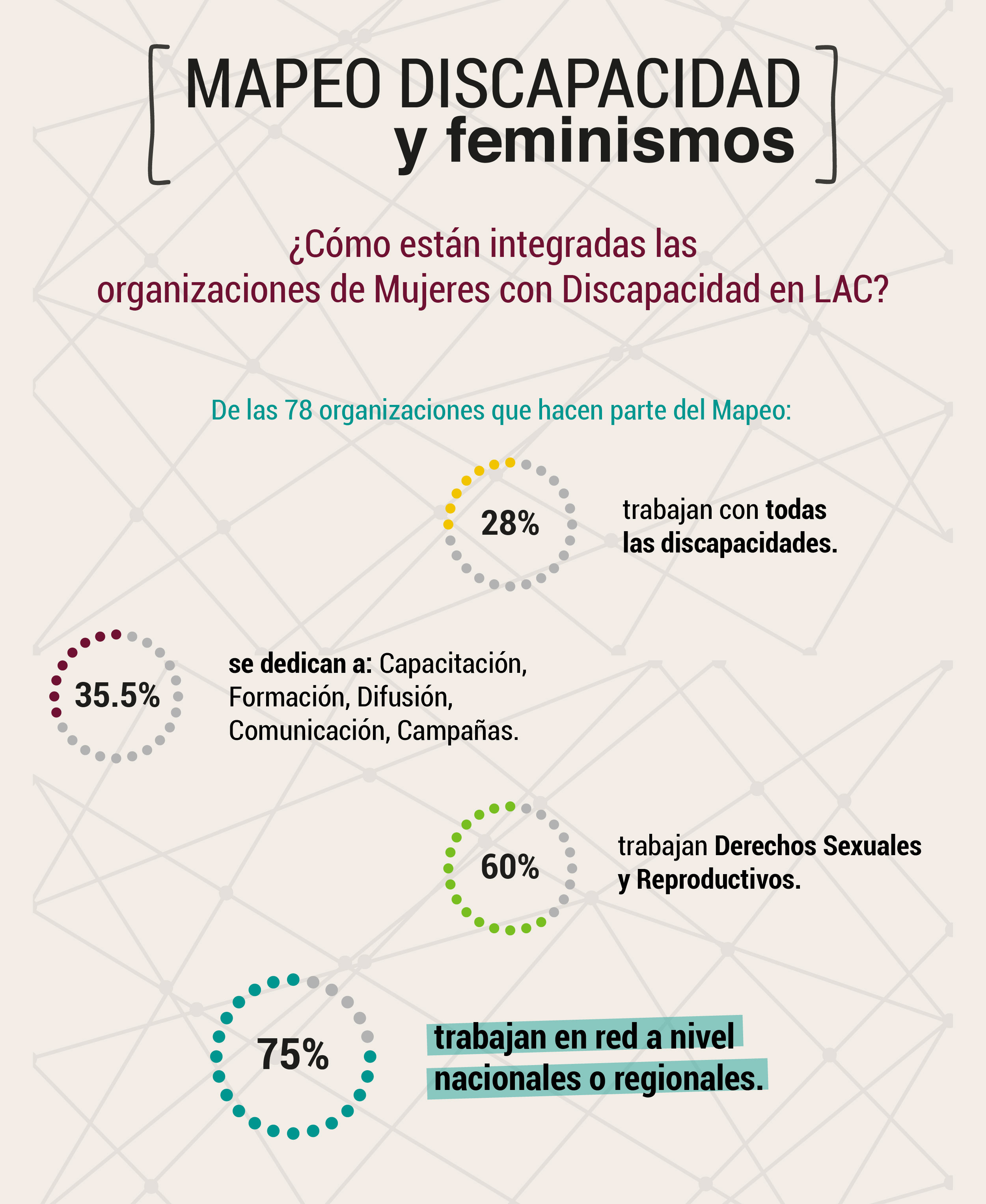 Este mapeo nos deja clara la necesidad de tejer feminismos interseccionales, en donde las Mujeres con Discapacidad hacen parte de las agendas, son escuchadas y sus resistencias incluidas.
